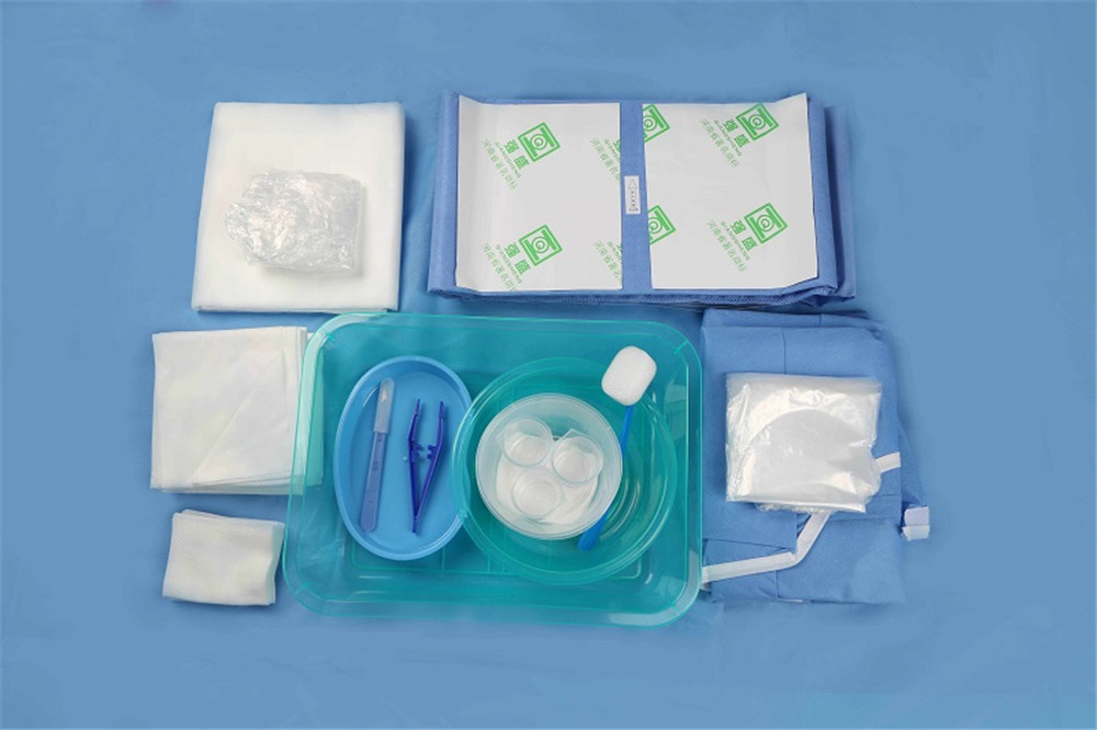 本品由一次性使用治疗巾、剖腹单、一次性使用包布、一次性使用中单、灭菌橡胶外科手套、医用纱布块、镊子、一次性使用手术衣、一次性使用口罩、一次性使用医用帽、纱布绷带、溶药器、塑料盆、塑料杯、药杯、物品盒等组成(配置可选)。